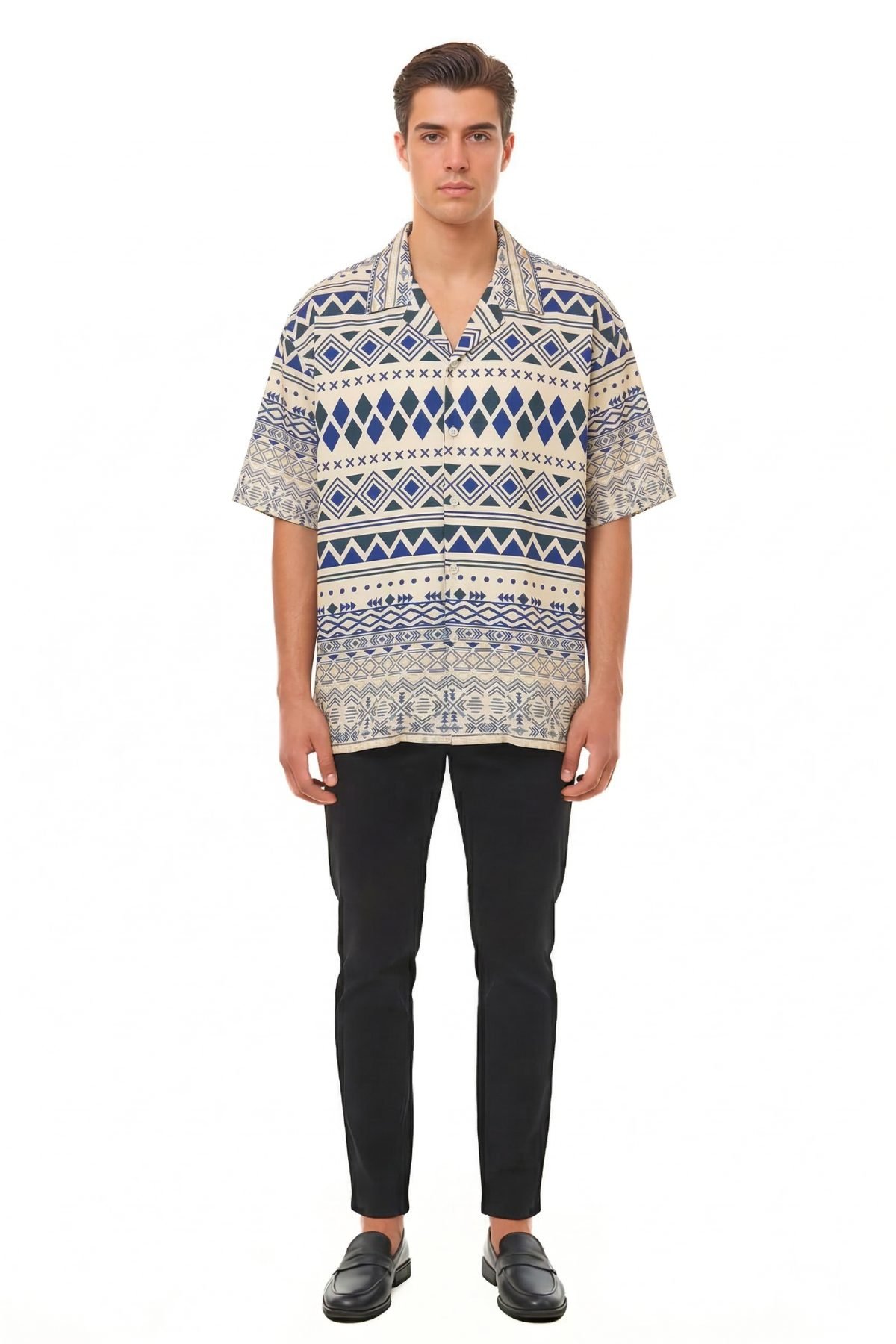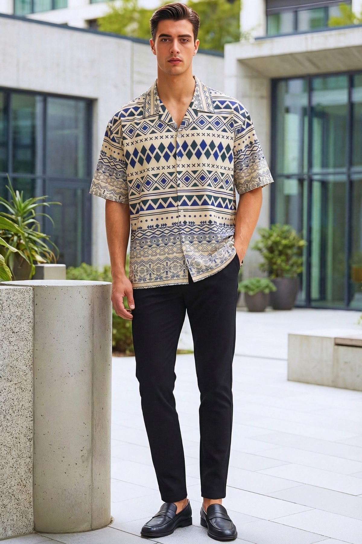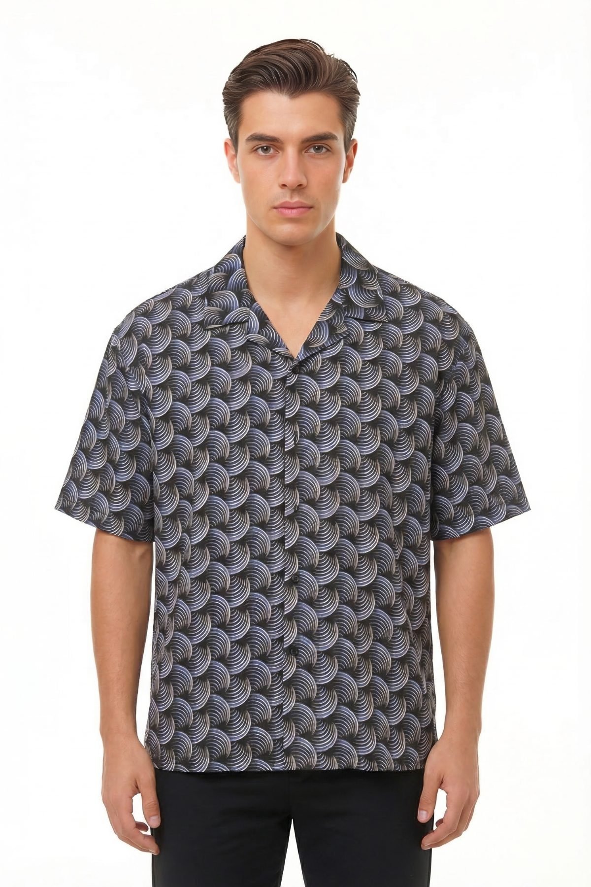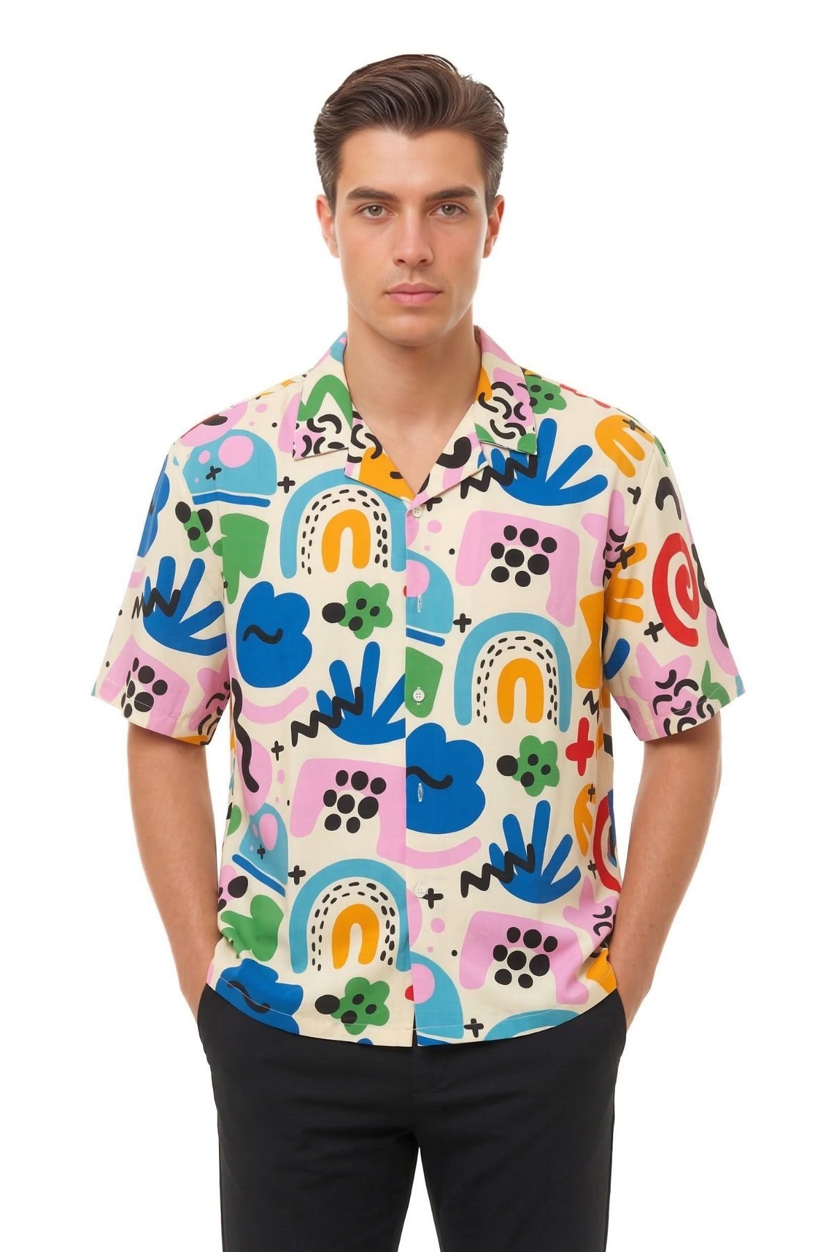 This shirt features a dynamic, multi-tonal splatter graphic in a striking palette of amber, tangerine, and sun-yellow. Set against a pitch-black canvas, the abstract “flare” effect creates an intense visual depth. Engineered with our signature oversized boxy fit and a relaxed Cuban collar, it offers a spacious, contemporary drape that feels as bold as it looks.