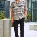 Keep the rest of your outfit muted to let the “ignite” print take center stage. Pair this with black distressed denim or matte black cargo pants. For a more tech-wear inspired look, style it unbuttoned over a black compression shirt with chunky orange-accented sneakers to tie the colors together.