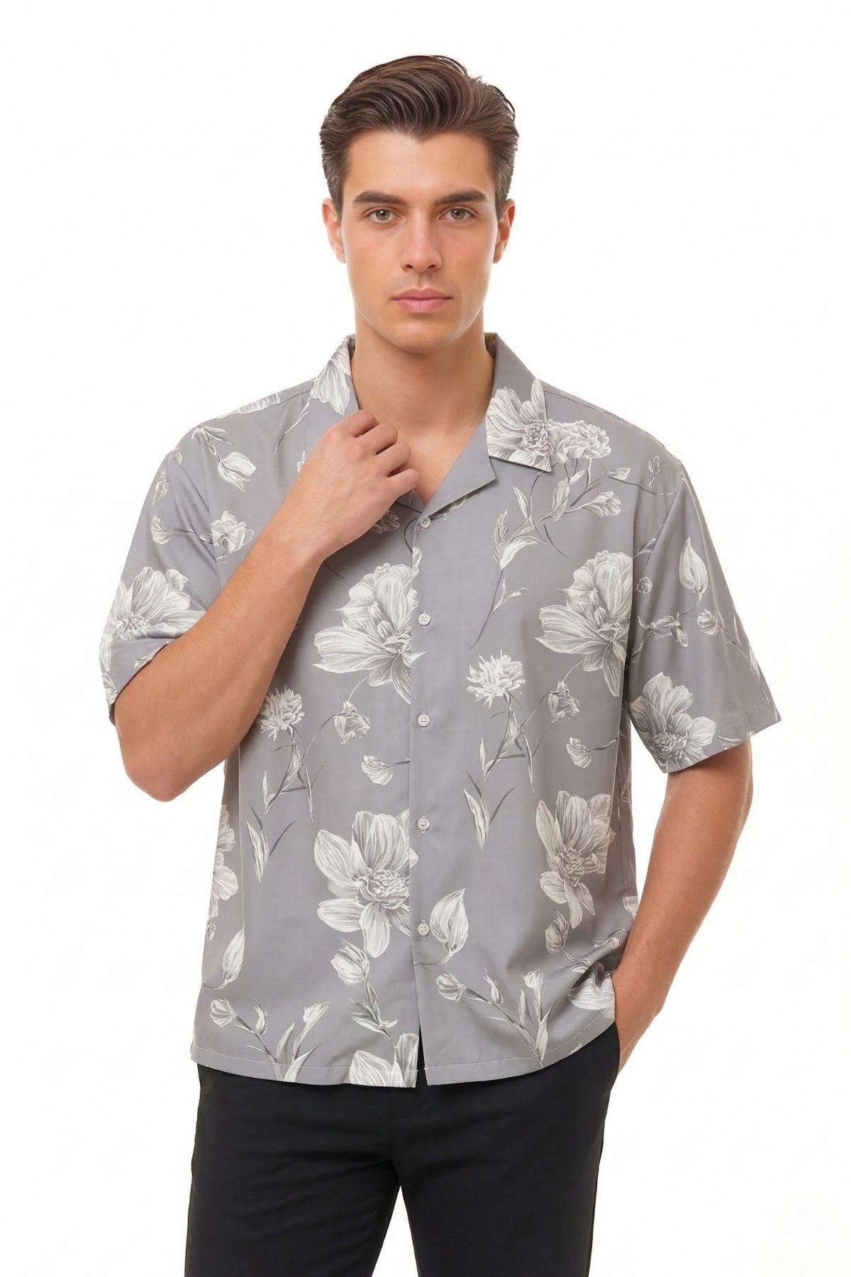 This shirt features oversized, watercolor-inspired floral motifs in a palette of serene blues and deep indigo. The airy, white canvas allows the delicate brushwork and varying shades of azure to take center stage, creating a look that is both visually striking and calming. Cut in our signature oversized boxy fit with a classic Cuban collar, this shirt offers a fluid drape and a sophisticated, art-forward profile.