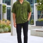 Keep the look light and fresh by pairing this with off-white linen trousers or light-grey chinos. For a more contemporary urban outfit, style it with relaxed-fit navy blue pants and white leather sneakers. Accessorize with silver jewelry to complement the cool blue tones of the floral design.