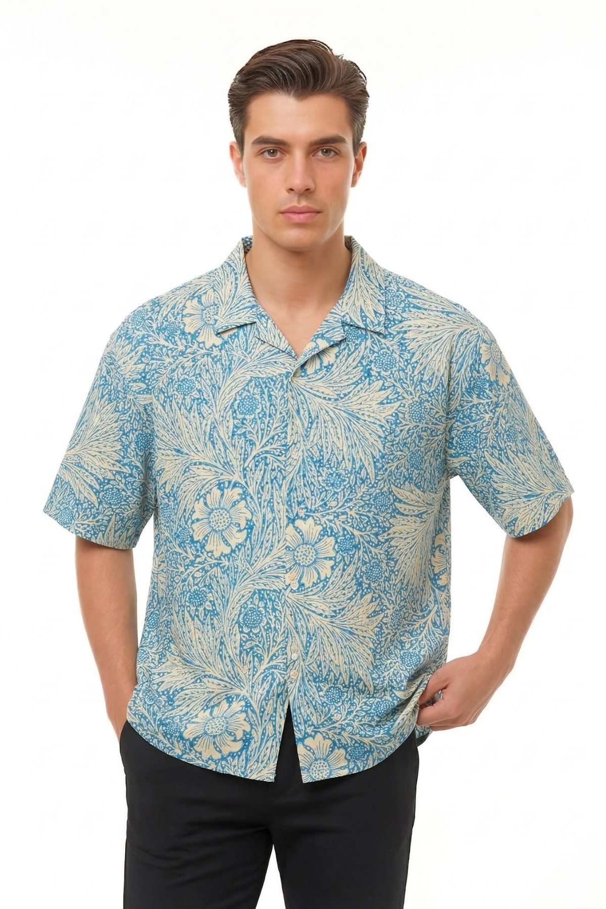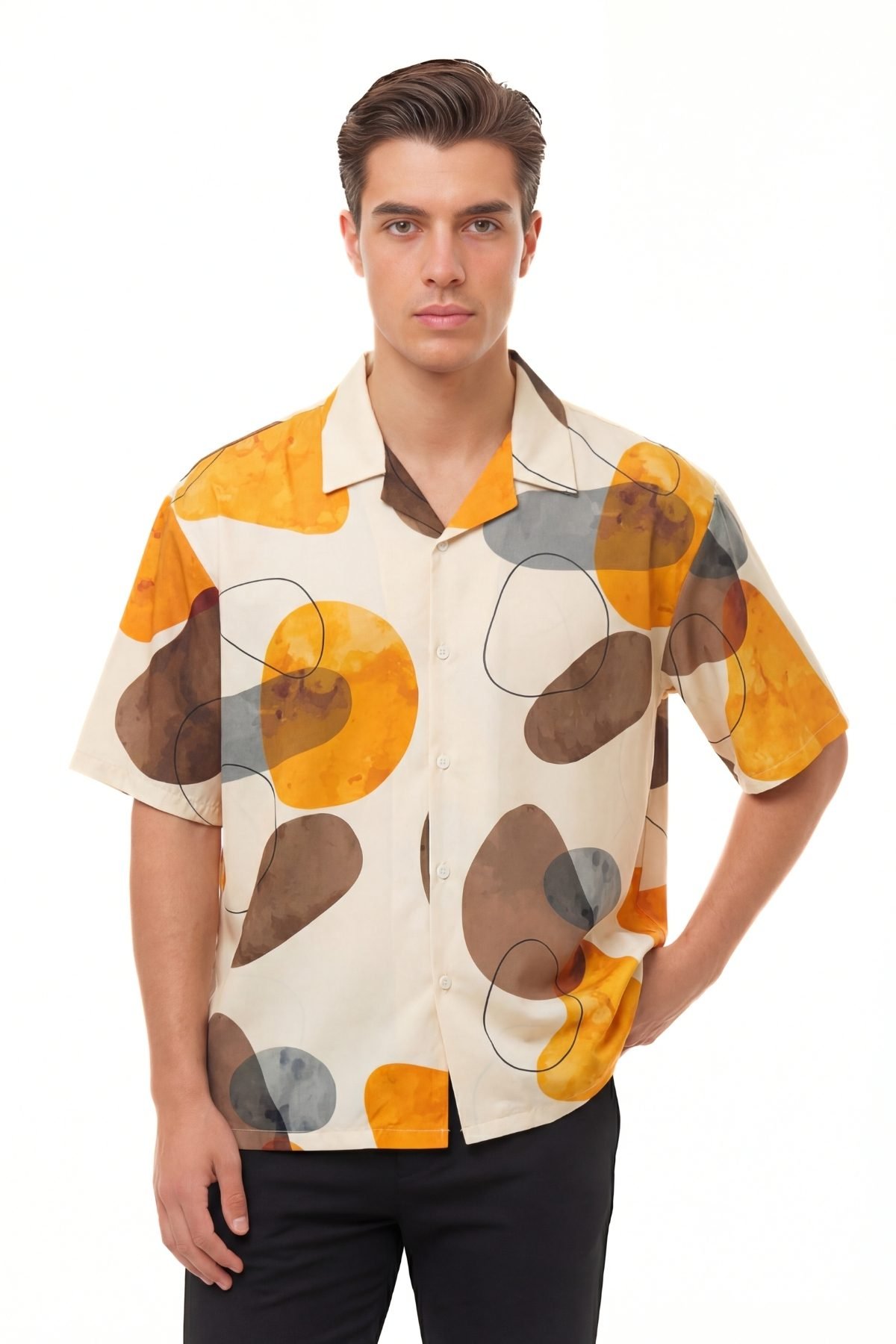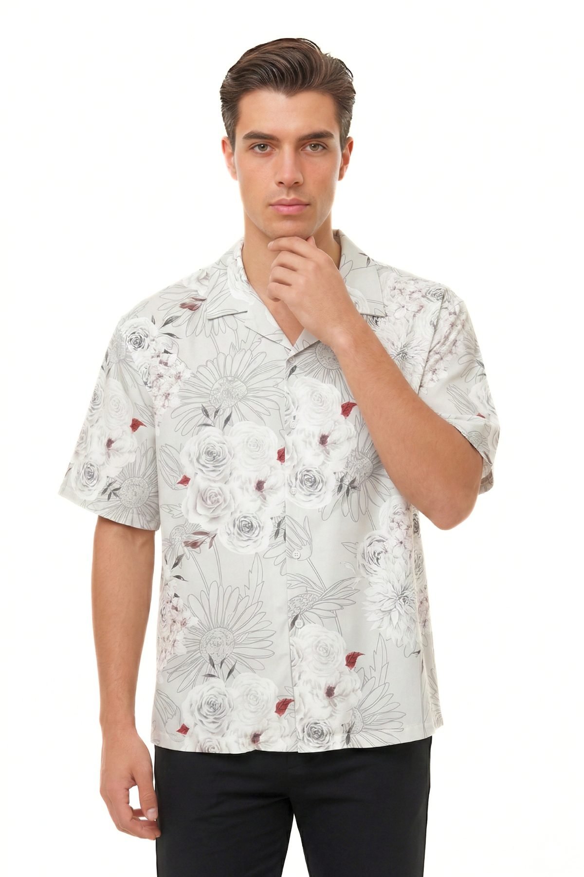 This shirt features an intricate, all-over print of fine-line architectural grids and geometric frameworks. The sharp white-on-black contrast gives the garment a sleek, “draftsman” aesthetic that feels both modern and futuristic. Cut in our signature oversized boxy fit with a classic Cuban collar, this piece offers a refined, structured drape while maintaining a relaxed, breathable feel.